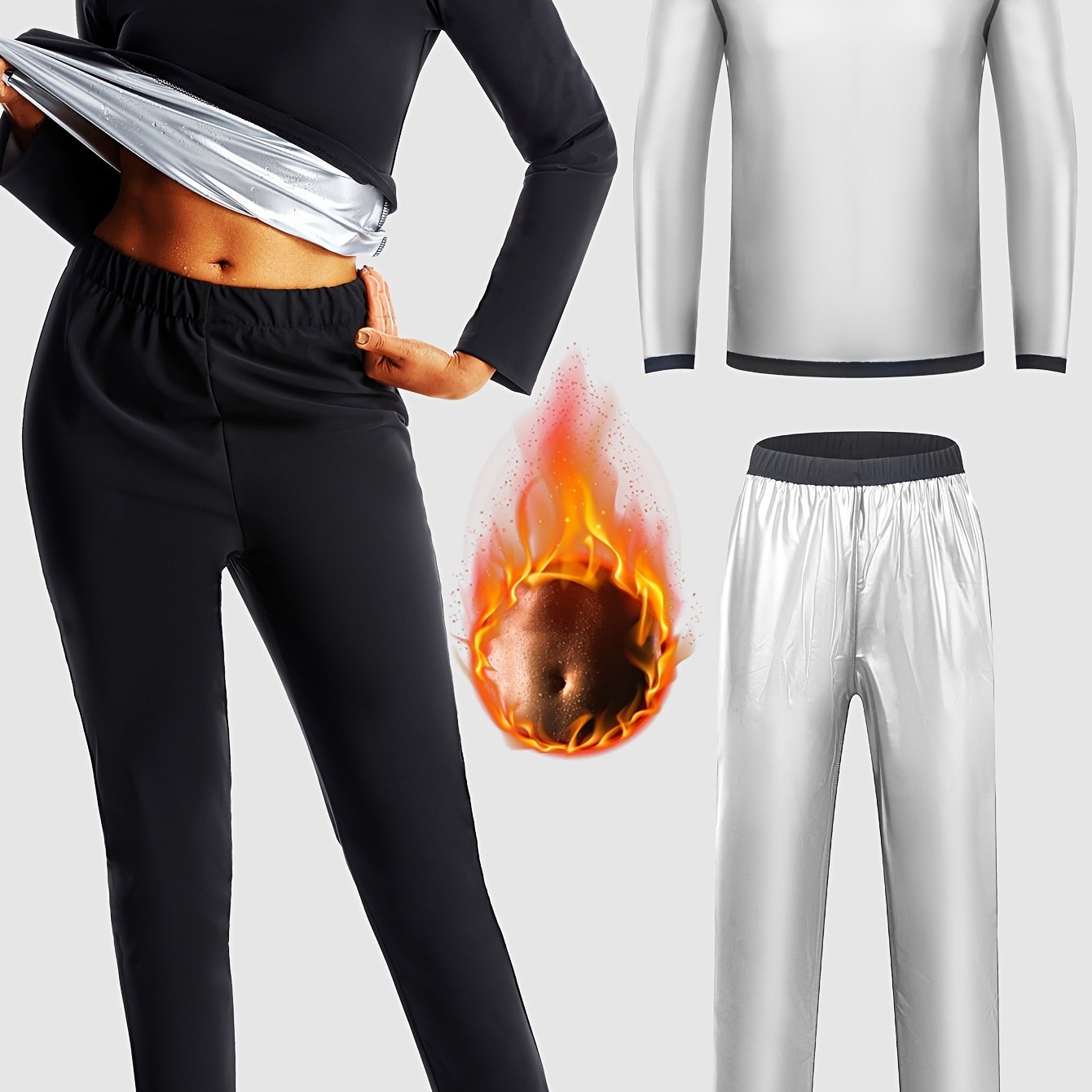 TEMU 여성용 캐주얼 사우나 슈트 여성용 땀나는 스포츠 슈트 여성용 스포츠 빠른 땀나는 피트니스 슈트 유럽 및 미국 여성용 땀나는 슈트 스포츠 사우나 땀나는 옷 피트니스 요가 발열 땀나는 긴팔 땀나는 슈트 땀나는 긴바지