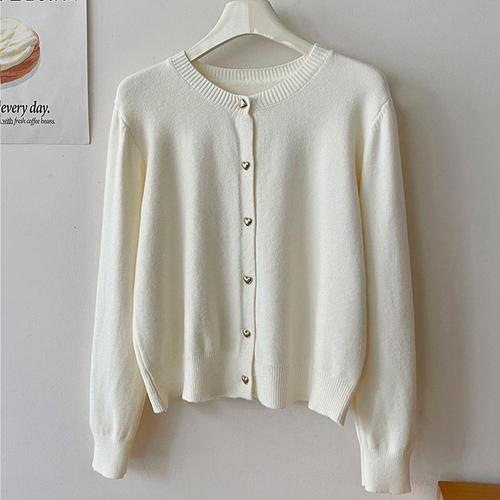 브레드 가디건 라운드넥 니트 긴팔 카아우터