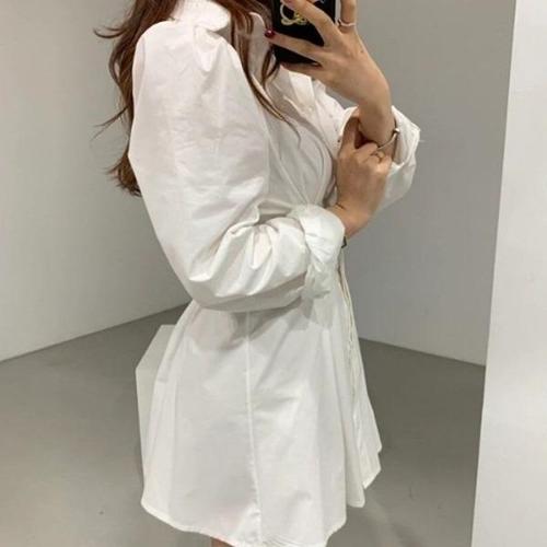 [옷자락]여자 코튼 핀턱 무지컬러 플레어 퍼프 롱 원피스