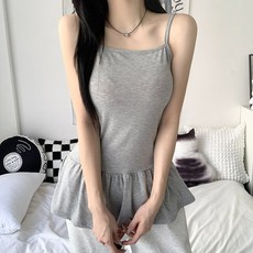 여성 오버핏 프릴 레이어드 끈나시 스판 민소매 밑단 캉캉 미니원피스st