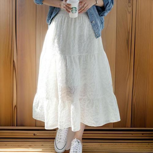 [옷자락] 여자 벚꽃룩 여리여리 프릴 캉캉 플레어 흰색 롱스커트