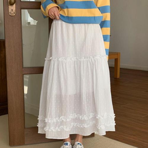 [신상오픈런]여성 도트 프릴 롱스커트 이중캉캉 발레코어 스타일 (32623696)