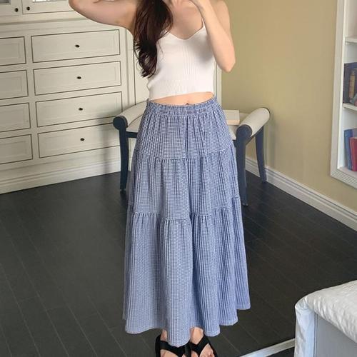 [신상오픈런]여성 여름 롱스커트 체크 패턴 캉캉 빅사이즈 휴양지 스타일 (36847797)