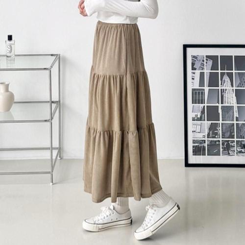 [옷자락]여성용 로맨틱 골덴 롱 캉캉 스커트 프릴 셔링 가을용