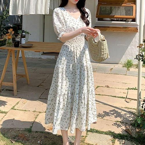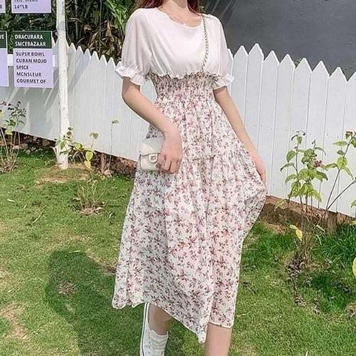 [에이치플러스몰]쉬폰 플라워 캐주얼 원피스 스모크밴딩 필수템 캉캉 A