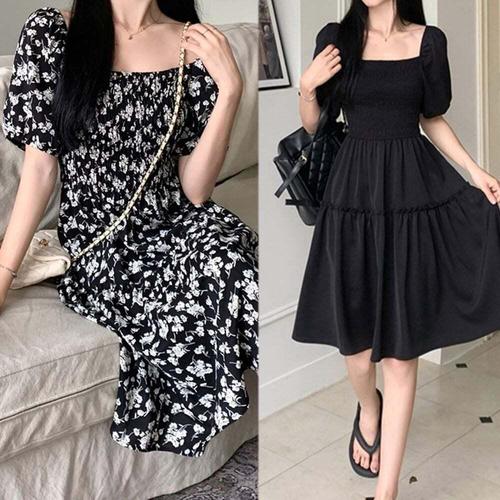 [에이치플러스몰]여름 러블리 스퀘어넥 스모크밴딩 캉캉 플레어원피스
