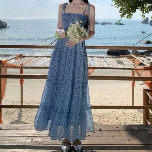 샵앤) 여성 스모크밴딩 끈나시 바캉스룩 캉캉 롱원피스 WON-WDR-WF7F104