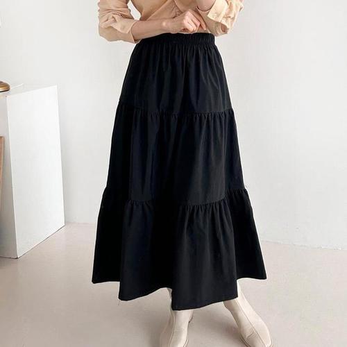 여자 데일리 스트릿 밴딩 플레어 3단 캉캉 롱 스커트