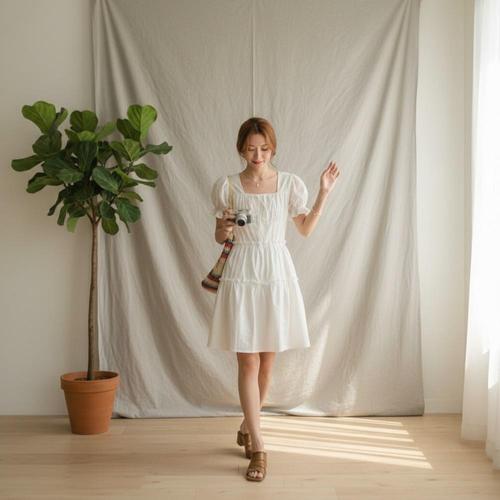 여성 러블리 여름 캉캉 퍼프소매 미니원피스