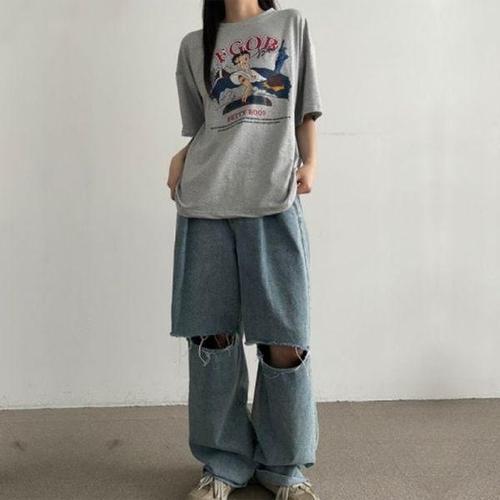 [에이치플러스몰]루즈핏 캐릭터프린팅 데일리 여름반팔