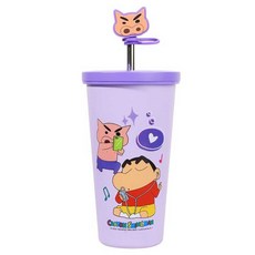 StarR 짱구 캐릭터 스트로우 캡 보온텀블러, 1개, 600ml, 퍼플