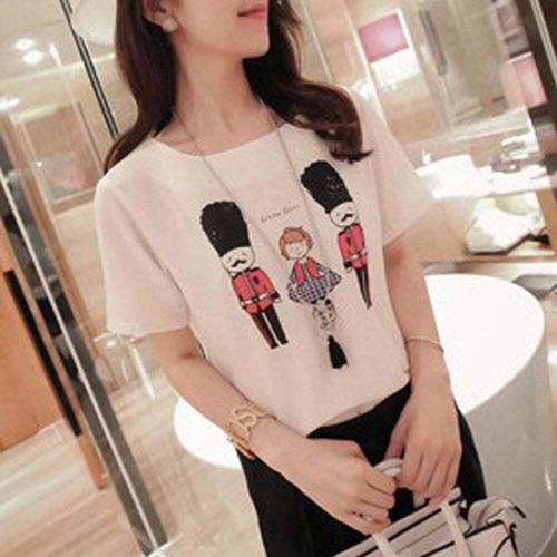[셀럽하우스]여자 MFFZ8639 병정 스타일 캐릭터 반팔 1P 고품질 귀여운 일상