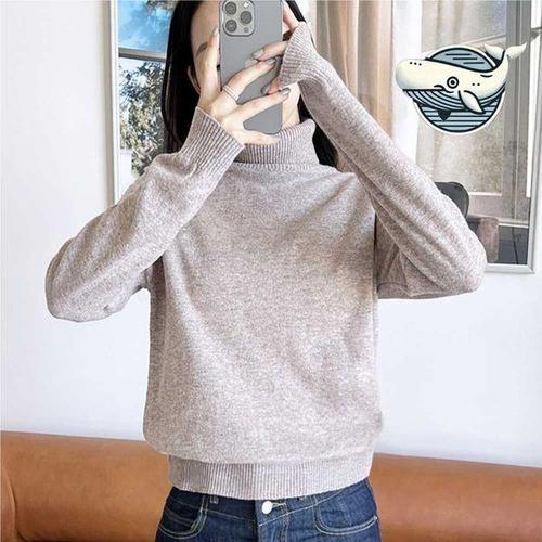 [에이치플러스몰]캐시미어 여성 데일리 목폴라 니트 클래식 긴팔 여자