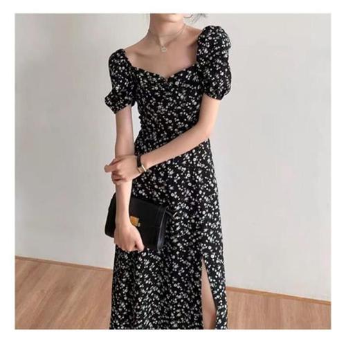 [에이치플러스몰]여성 휴양지 롱원피스 볼륨 소매 쉬폰 캐주얼