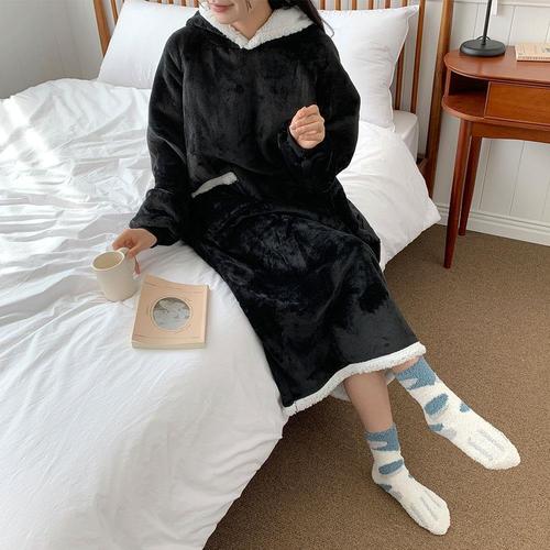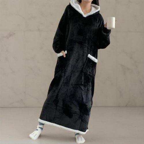 [옷자락]여성 캐주얼 루즈핏 담요 후드 롱 원피스 포근한 블랭킷