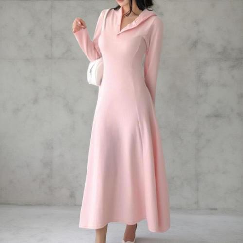[옷자락]여성 캐주얼 후드 버튼 슬림핏 A라인 롱 드레스