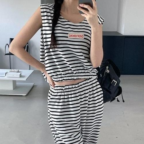 [신상오픈런]|KSD2461|캡소매 옆트임 민소매티셔츠 스트라이프팬츠 투피스_20459003_597559