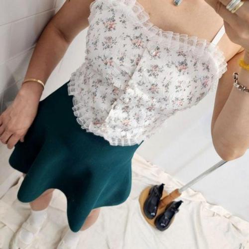 크롭탑 바캉스 플라워 나시 브라캡 러블리 레이스 WD7DC27