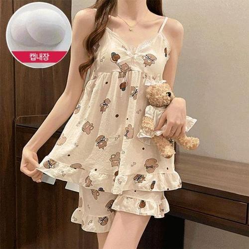 [셀러허브_여성트랜드패션]ONM 베어 파자마세트 캡내장 홈웨어 민소매 잠옷 여름