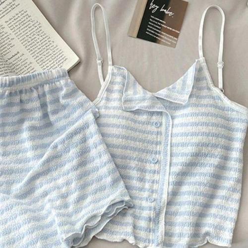 [다잇템_패션]여성 하프팬츠 실내복 줄무늬 캡내장 세트