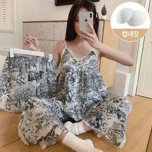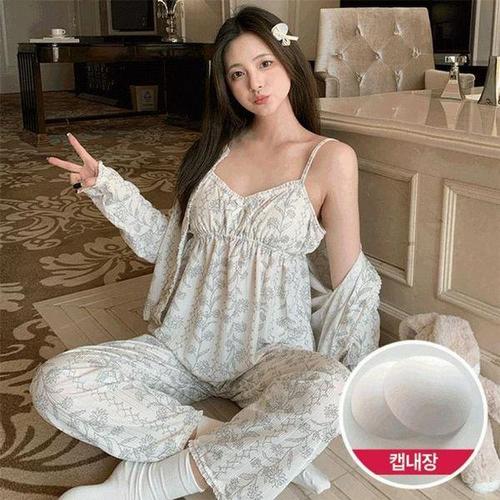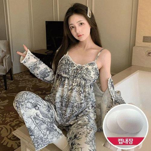 홈웨어 잠옷 4종세트 끈나시 가디건 긴바지 반바지 3타입 캡내장 나시
