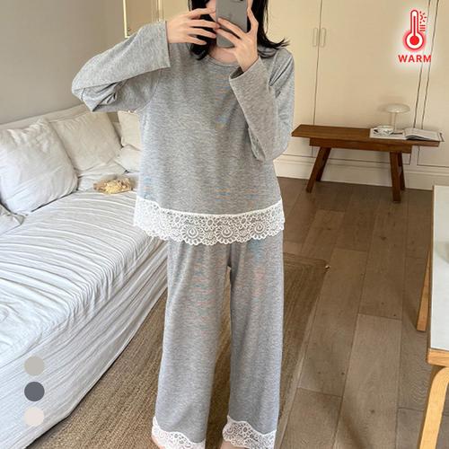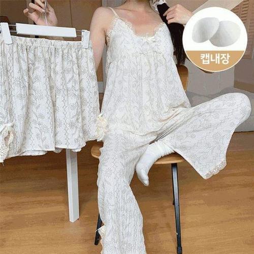 KARRA 화이트레이스기모파자마캡내장티셔츠+팬츠SET_A5W0274