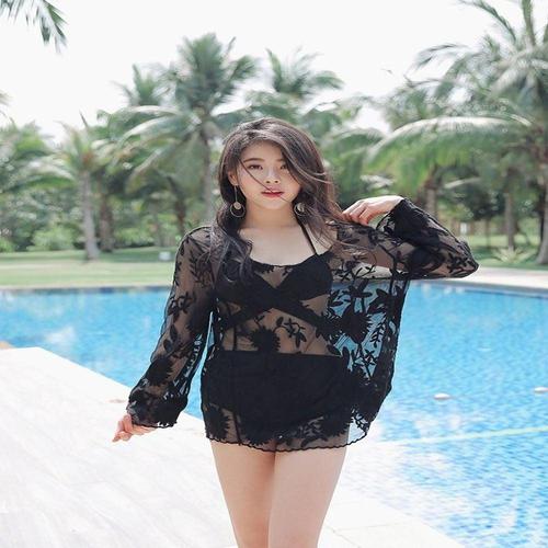 긴팔수영복 뱃살 커버업 수영복 긴팔 슬림 레이스 비키니 세트