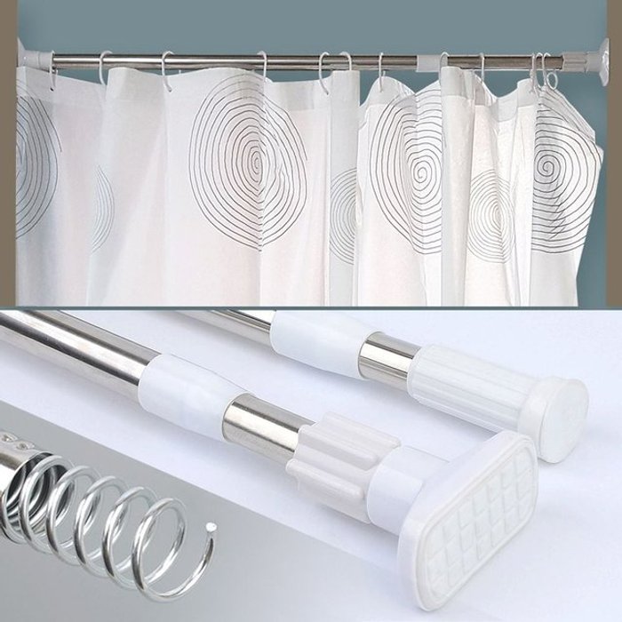 일자형 샤워커튼봉 원형 110-200cmx3개 강력압축봉