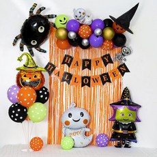 피앤비유니티 할로윈 풍선장식 커튼세트 오렌지, 1세트