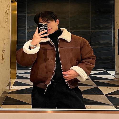 [원스톤]슬로그 스웨이드 양털 크롭 무스탕 3color 기획 남녀공용 커플룩 오버핏 따뜻한