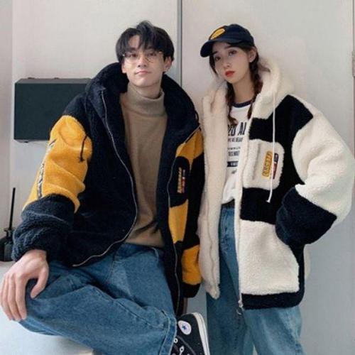 [에이치플러스몰]양털 오버핏 스타일 커플 후 점퍼 겨울 레저