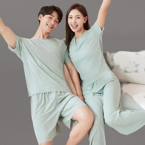 BYC 외 커플 잠옷 세트 봄 여름 순면 쿨 냉감 인견 반팔 긴팔 5부 파자마 홈웨어 바지 원피스 냉장고 시원한 남성 남자 여자 여성 빅사이즈 주니어 110