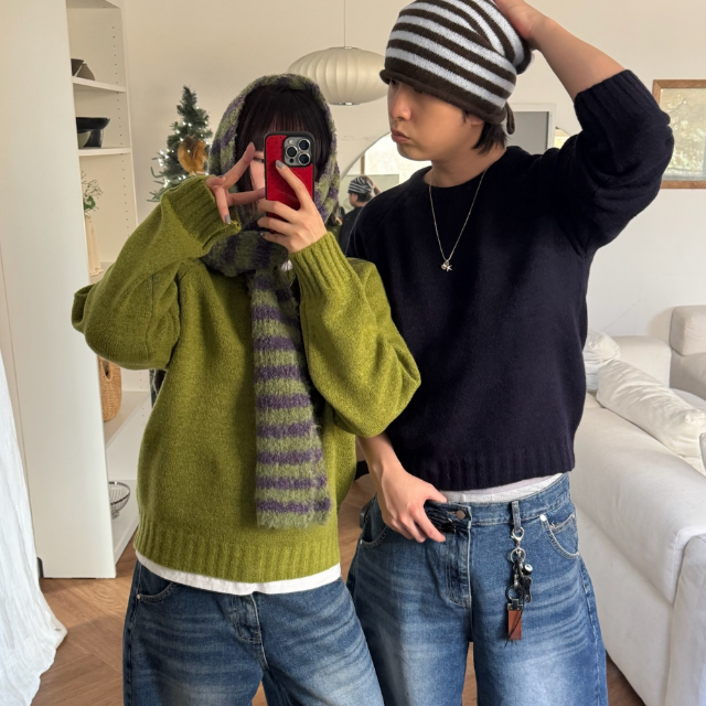 [셀러허브_여성트랜드패션]남성상의 겨울 라운드넥 상의 오버핏니트 커플니트 풀오버 남성 시밀러룩