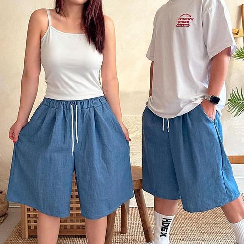 [신상오픈런]커플용 남녀 핀턱 밴딩 청반바지 여름 바람막이 팬츠 (39079773)