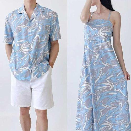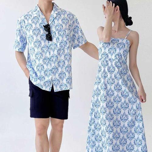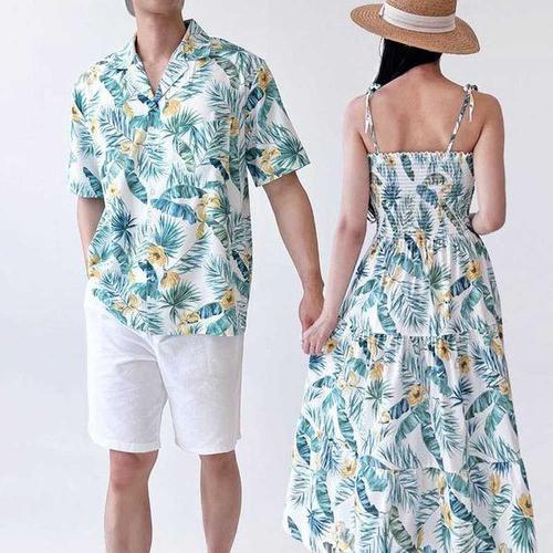 [에이치플러스몰]커플 비치웨어 셔츠 바캉스룩 신혼여행 커플룩 패션