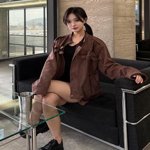 남성용 블랙 캐주얼 심플데일리룩 항공 점퍼 가죽옷 아우터 봄가을 라이더 루즈핏 빅사이즈 커플 PU가죽 재