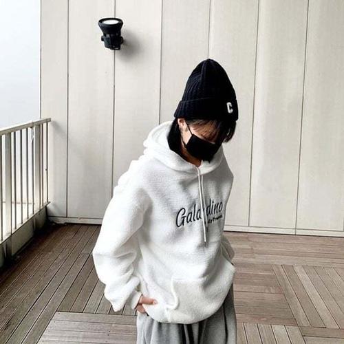 [셀럽하우스]기모티 KXMX0569 커플티 레터링로고 후드티 뽀글이 기모 오버핏