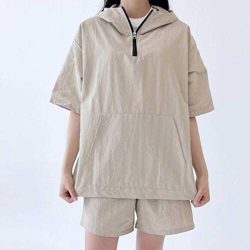 [에이치플러스몰]여자후드 상하의세트 반팔 반바지 오버핏 운동복 커플