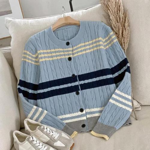 [신상오픈런]여성 클래식 컬러 배색 꽈배기 니트 카디건 (41587334)