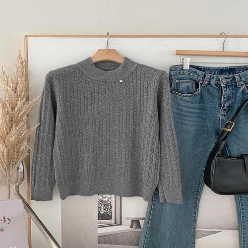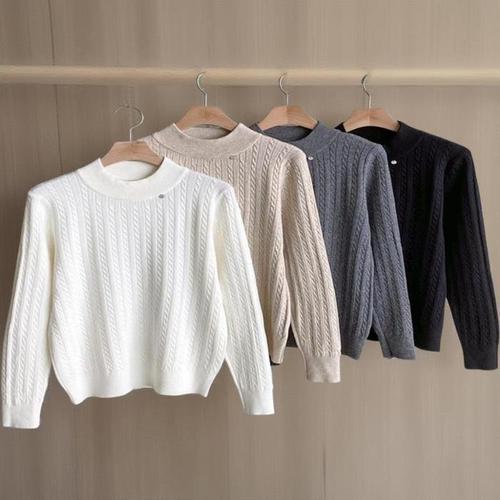 [신상오픈런]여성 무지 컬러 꽈배기 긴팔 반목 니트 루즈핏 (41913705)