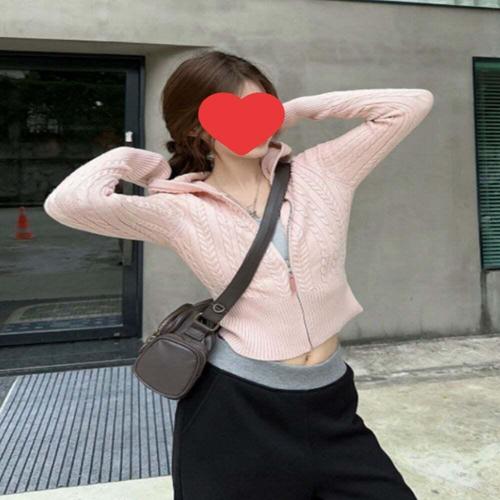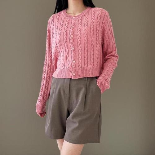 [신상오픈런]여성 무지컬러 꽈배기 라운드넥 세미 크롭 긴팔 니트 가디건 (40953192)