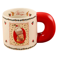StarR 컵케이크 모자 쓴 작은별 캐릭터 세라믹 머그컵, 1개, 레드
