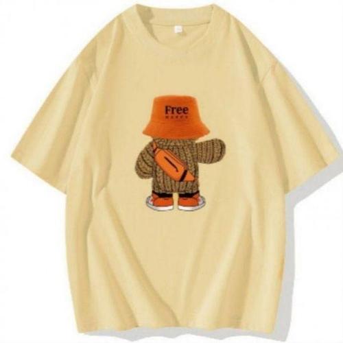 여성용 여름 순면 루즈핏 반팔티 귀여운 캐릭터 프린트 중기장 티셔츠 데일리룩 ZXC41737