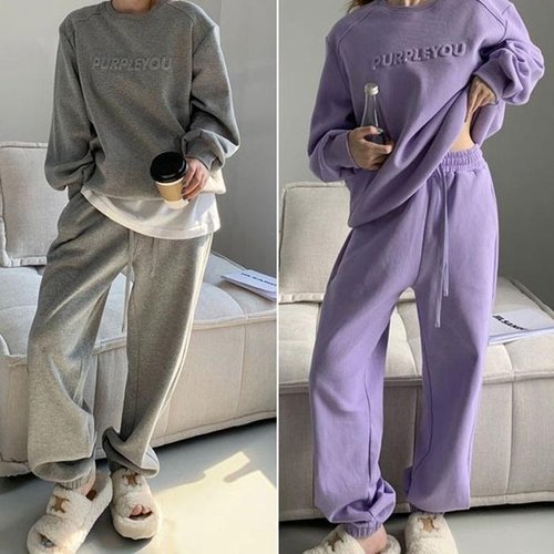 트레이닝복 긴팔세트 여성 운동복 한겨울 슬림핏 니트 와이드 바지 세트 트레이닝 캐주얼 투피스 힛템