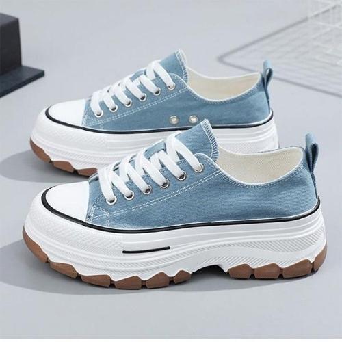 [옷자락]여자 캐주얼 스티치 슈레이스 캔버스 운동화 스니커즈