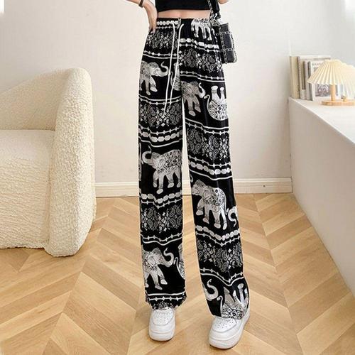 [셀럽하우스]밴딩 YOIP7417 여성 캐주얼 와이드 팬츠 필수템 1P 코끼리 패턴