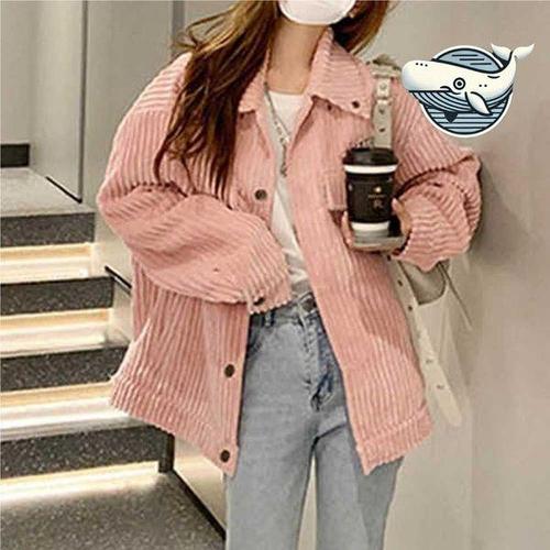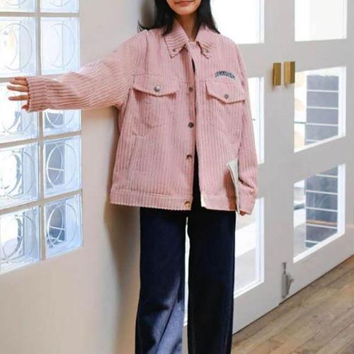 [에이치플러스몰]도시 감성 여성 핑크 코듀로이 자켓 캐주얼