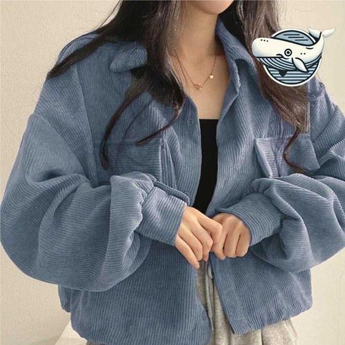 캐주얼 여성 코듀로이 크롭 스트링 셔츠 자켓 점퍼