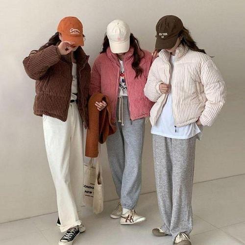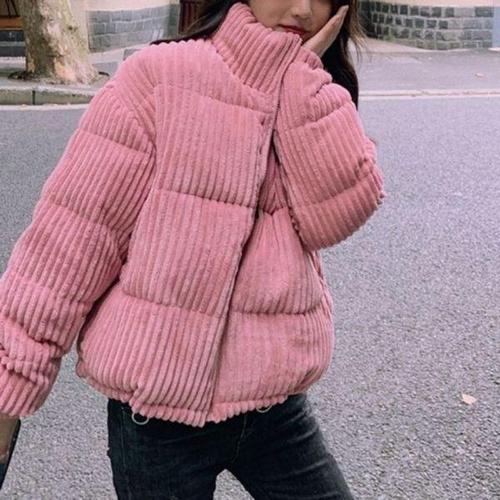 [에이치플러스몰]여성 숏패딩점퍼 부드러운 하이넥 코듀로이 골덴점퍼 패딩 여성 경량 자켓 점퍼 숏 여자..