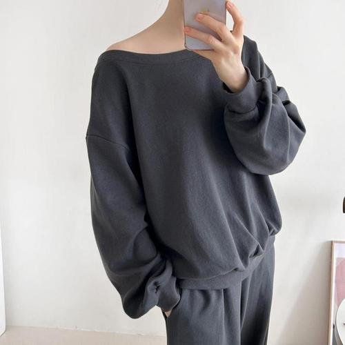 [신상오픈런]여성 심플 보트넥 맨투맨과 코튼 와이드 팬츠 가을 코디 세트 (41566936)